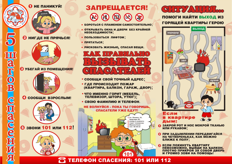 Очень важно для взрослых - самим правильно себя вести во всех жизненных ситуациях, демонстрируя детям безопасный образ жизни. Не забывайте, что ваш пример взрослого человека для ребёнка заразителен! В случае ЧС, опасности, обнаружения огня или дыма немедленно сообщайте по телефону «101» «112»