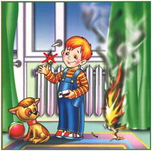 - не оставляйте на виду спички, зажигалки! Чаще напоминайте ребенку об опасности игры с огнем. Нужно стремиться к тому, чтобы ребенок осознал, что спички – не игрушка, а огонь - не забава, чтоб у него сложилось впечатление о пожаре, как о тяжелом бедствии для людей.