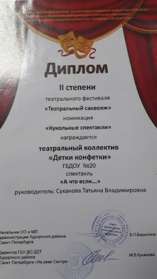 Подведены итоги районного тура XI городского конкурса чтецов среди дошкольников "Разукрасим мир стихами" Поздравляем наших победителей 1 место в номинации 4-5 лет - Калушин Савелий! 1 место в номинации 6-7 лет - Калушин Григорий! Выражаем огромную благодарность детям за их труд. Отдельно благодарим родителей за помощь и поддержку!