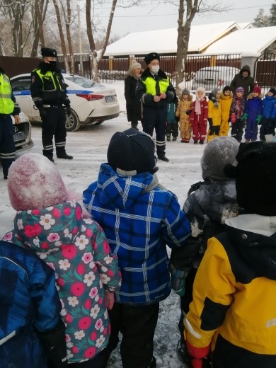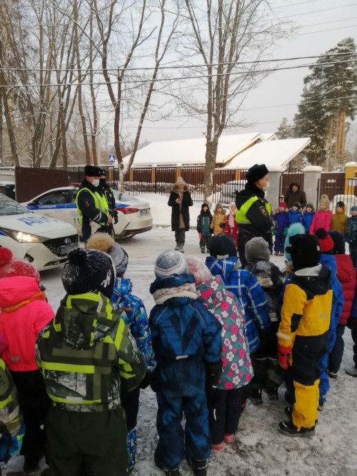 Сегодня к нам приезжали инспекторы ГИБДД.Они провели с детьми беседу о безопасности на дороге и в транспорте.