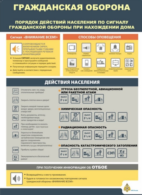 Памятки по действиям при возникновении опасности беспилотной, авиационной или ракетной атаки, катастрофического затопления, радиационного (химического) заражения